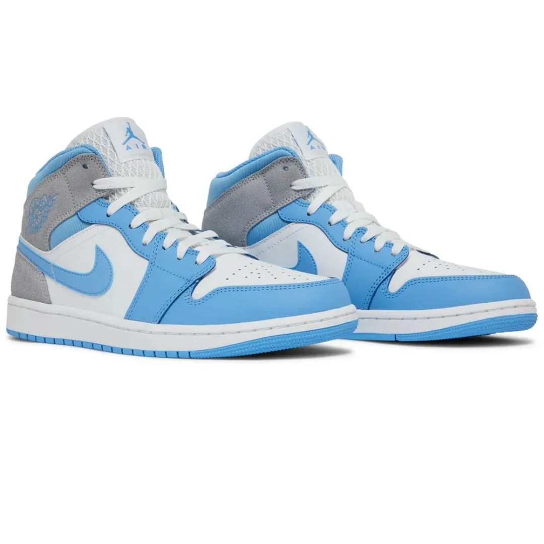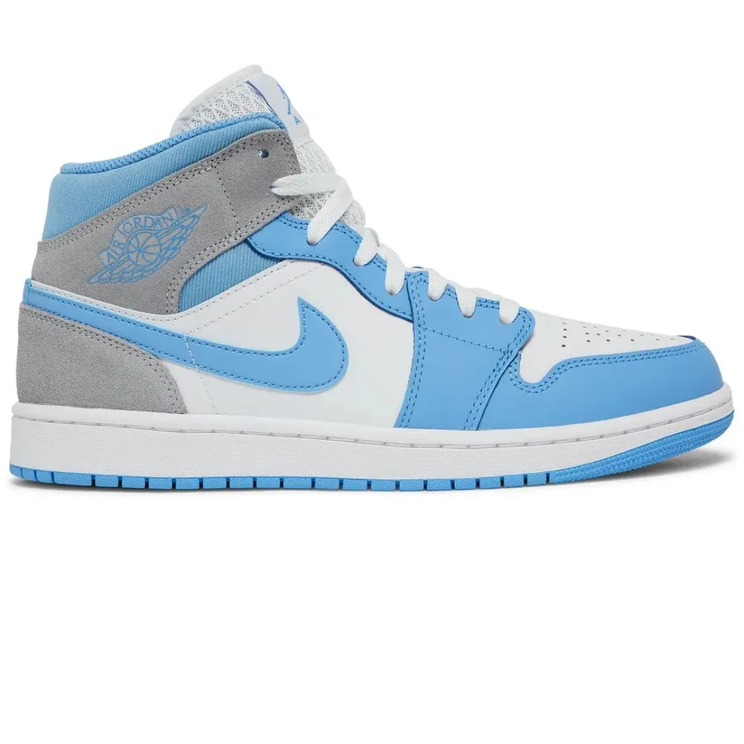Model Air Jordan 1 Mid University Blue Grey bazuje na kultowej konstrukcji znanej z pierwszej generacji Jordanów. Cholewka o średniej wysokości zapewnia wsparcie kostki i stabilizację, jednocześnie pozostając lżejszą i bardziej codzienną alternatywą dla wersji High. Forma nie została zmieniona — to sprawdzona geometria, która łączy funkcję i styl.
