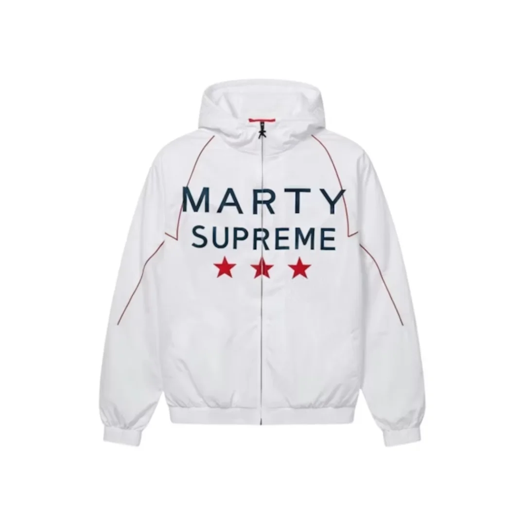 NAHMIAS x Marty Supreme A24 Classic Warm Up England Jacket White – Czysta Forma i Filmowa Tożsamość