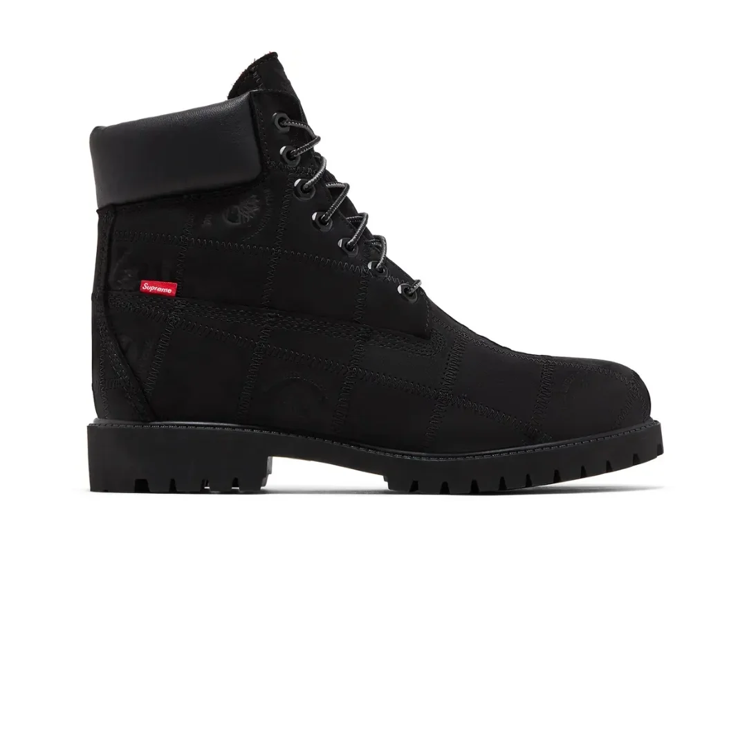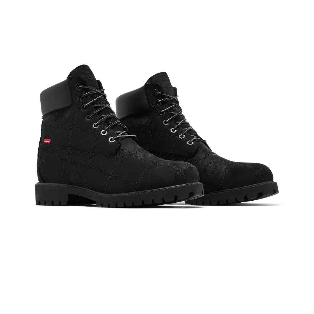 Timberland 6′ Premium Waterproof Boot Supreme Black to wyjątkowa odsłona kultowych „szóstek”, powstała we współpracy Timberland x Supreme. Klasyczna, masywna sylwetka została ubrana w głęboką czarną kolorystykę, podkreślającą surowy, streetwearowy charakter tego modelu. To buty, które łączą outdoorowe DNA Timberlanda z ikoną miejskiej kultury Supreme.